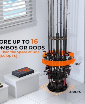 Introducing the KastKing V16 Rotating Fishing Rod Holder, the ultimate solution for organizing your fishing gear. Designed to hold up to 16 rods and combos, this space-saving pole organizer is perfect for any garage or fishing enthusiast’s workspace. Crafted from durable ABS material, it ensures long-lasting use while providing a sturdy base for your valuable…