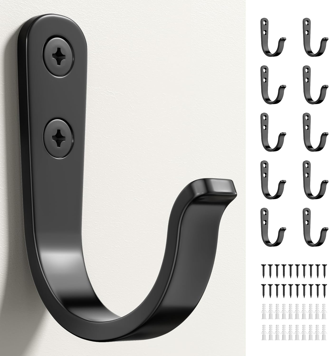 10Pcs Wall Hooks for Bathroom, Kitchen, Closet, and Garage – Black Metal Hooks for Hanging Coats, Towels, Hats, Keys, Bags, and Coffee Cups – Holds Up to 40 lbs | for Bathroom, Kitchen, Closet, and Garage, for Hanging Coats, Towels