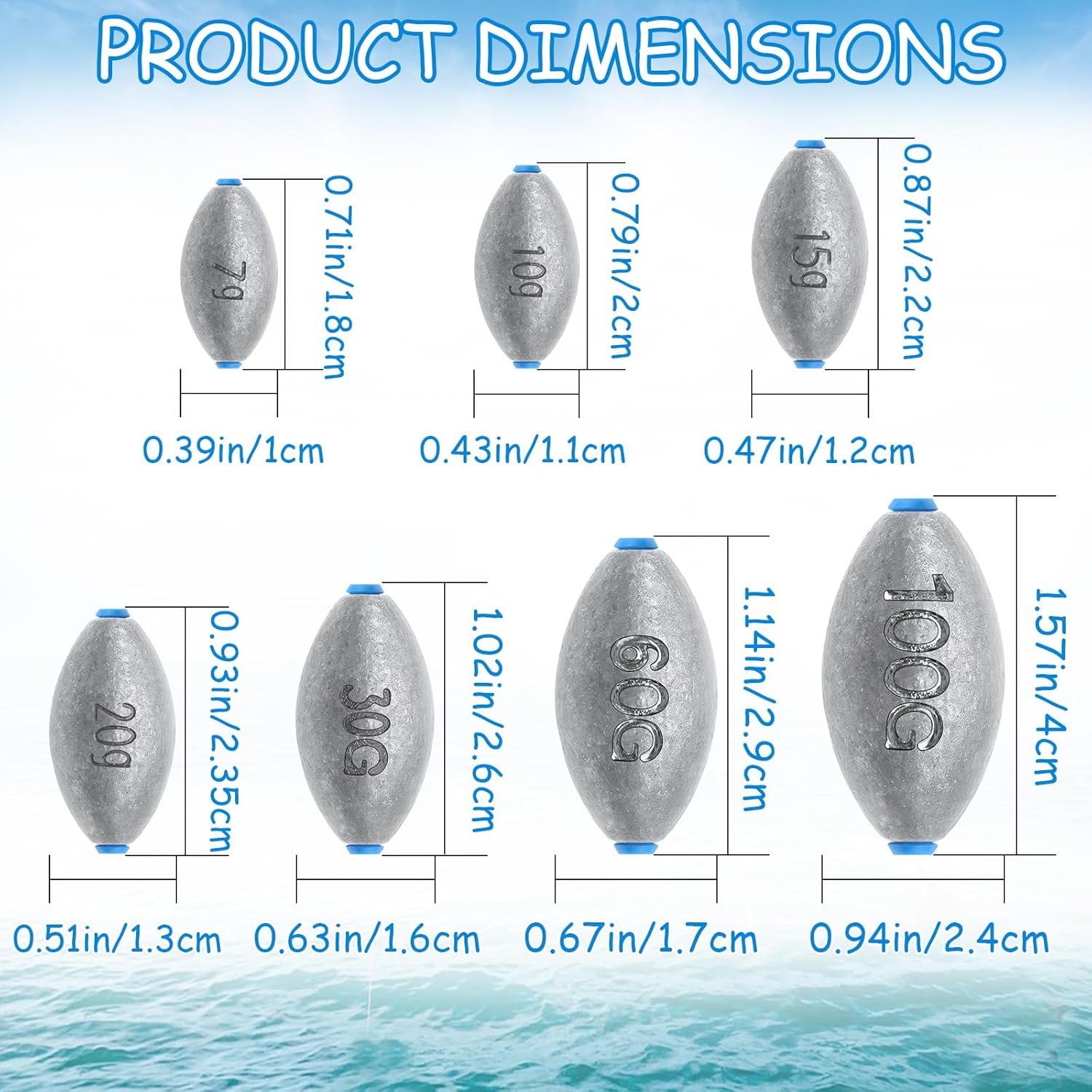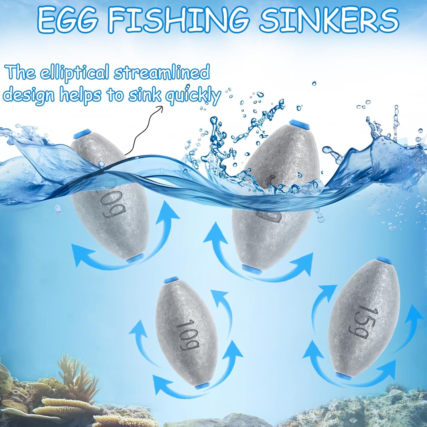 Egg Sinkers Fishing Weights, Bullet Fishing Weights Lead Oval Shaped Fishing Weights Sinkers for Saltwater Freshwater Fishing 1/4oz to 3oz