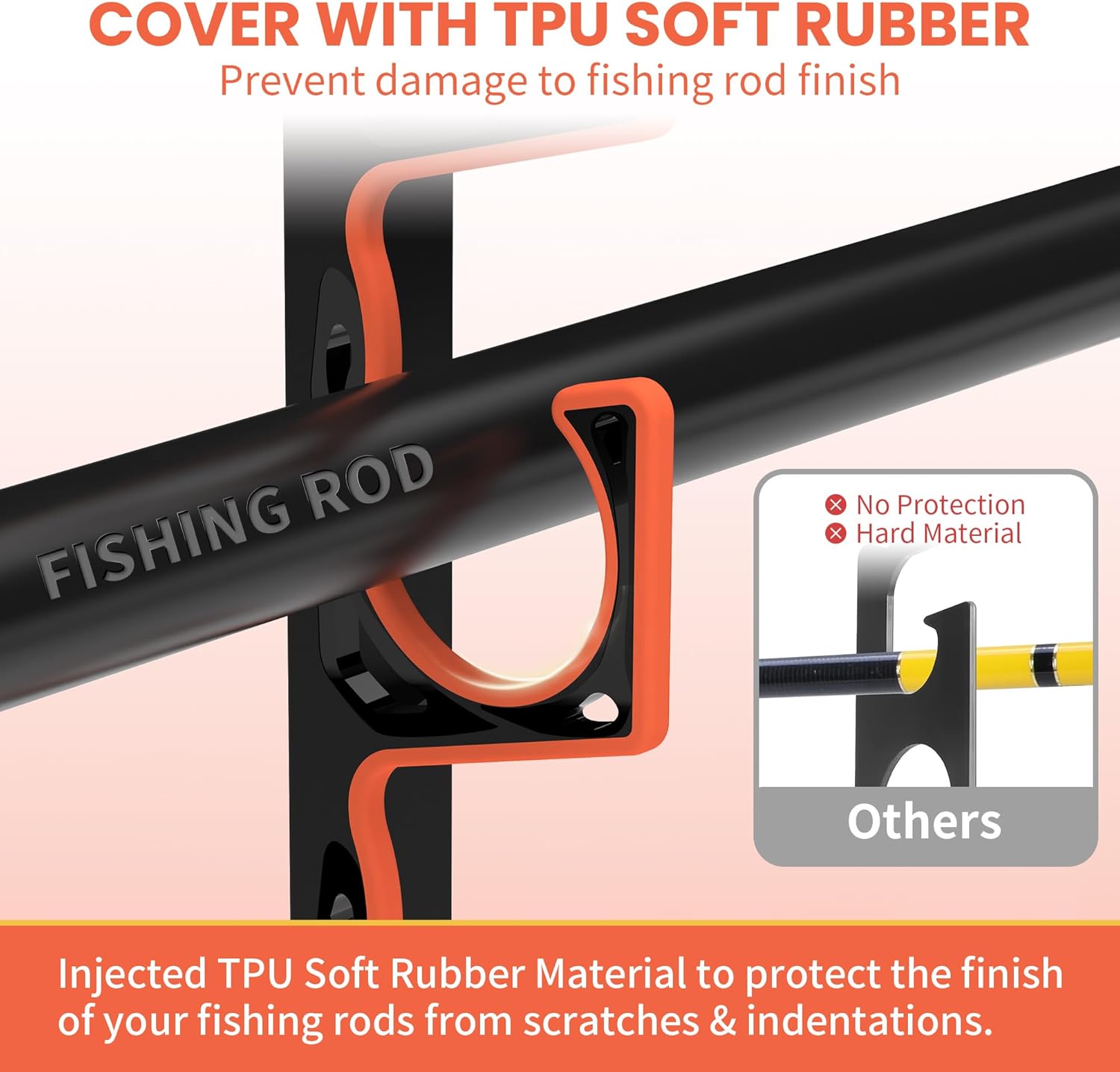 Introducing the Gocozer Fishing Rod Holder, the ultimate solution for organizing your fishing gear! This 4 PACK of wall or ceiling mounted fishing pole holders is designed to keep your rods safe and secure while maximizing your garage or storage space. Each holder features a soft protective pad that prevents scratches and damage to your valuable fishing rods.