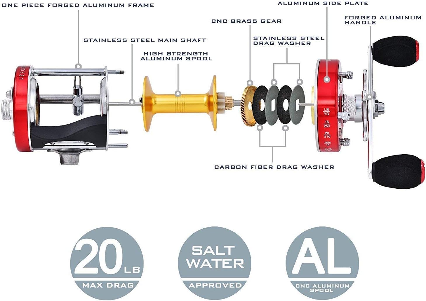 KastKing Rover Round Baitcasting Fishing Reel, Perfect Conventional Reel for Catfish, Salmon/Steelhead, Striper Bass and Inshore Saltwater Fishing Reel, Reinforced Metal Body