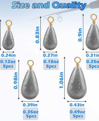 Introducing the Fishing Weights Sinkers Kit, your ultimate companion for a successful fishing trip! This comprehensive kit includes 25 pieces of high-quality lead fishing weights in 5 different sizes, perfect for targeting bass, catfish, and more in both saltwater and freshwater environments. Crafted for durability and performance, these sinkers are designed to provide optimal casting…